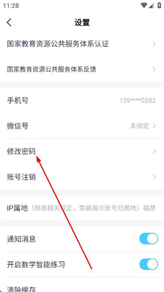 3、在設(shè)置頁(yè)面,點(diǎn)擊修改密碼選項(xiàng),進(jìn)入修改密碼頁(yè)面。