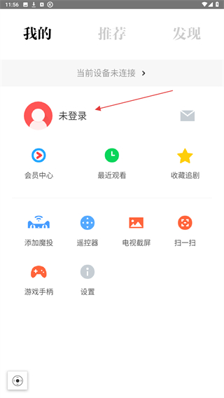 2、進(jìn)入我的頁面內(nèi),點(diǎn)擊下方未登錄的功能按鈕。