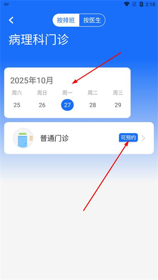 4、在病理科門診頁面,選擇就診日期,并點(diǎn)擊可預(yù)約的普通門診。