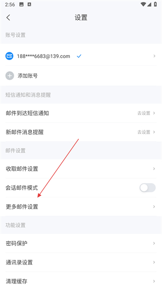 3、進入設置頁面后,點擊更多郵件設置選項。