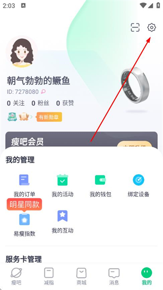 1、打開瘦吧APP,點(diǎn)擊底部導(dǎo)航欄我的。
