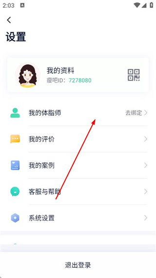 3、在設(shè)置頁面,點(diǎn)擊我的體脂師,進(jìn)入綁定體脂師頁面。