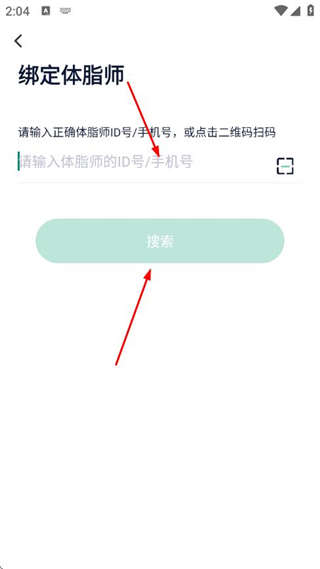 4、輸入體脂師的ID號(hào)或手機(jī)號(hào)后,點(diǎn)擊搜索,即可完成體脂管理師的綁定。