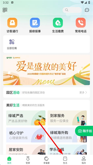 1、在綠城生活app首頁點擊生活選項,進(jìn)入生活頁面。