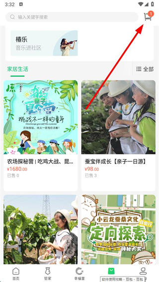 2、在生活頁面點擊右上角購物車圖標(biāo),進(jìn)入購物車頁面。