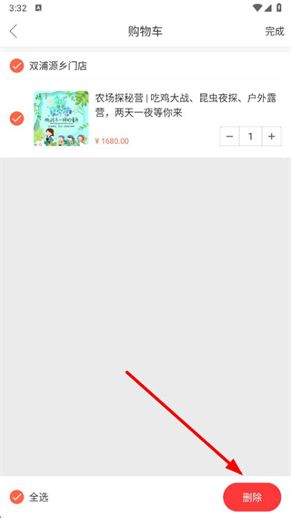 4、在編輯模式下選擇要刪除的商品,點擊刪除按鈕,即可完成購物車商品刪除操作。