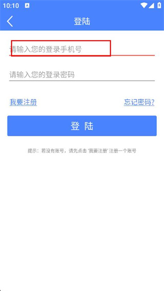 3、在登錄頁面,點(diǎn)擊輸入框,填寫需要登錄的手機(jī)號(hào)。