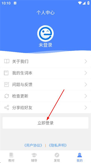 1、打開英語寶app,點(diǎn)擊底部導(dǎo)航欄的我的選項(xiàng)。
