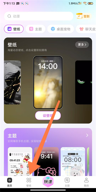 1、在壁紙應(yīng)用頁面,點(diǎn)擊底部壁紙選項(xiàng),進(jìn)入壁紙分類界面。