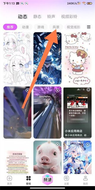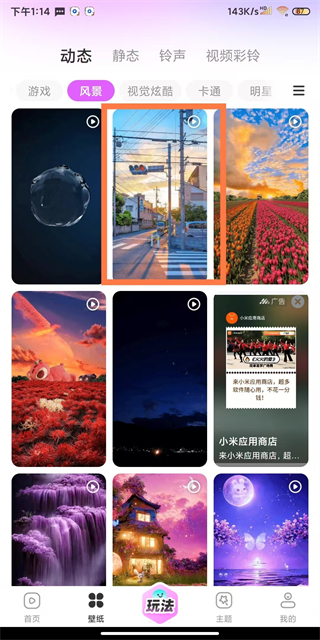 2、在壁紙分類界面,點(diǎn)擊風(fēng)景分類,進(jìn)入風(fēng)景壁紙列表。