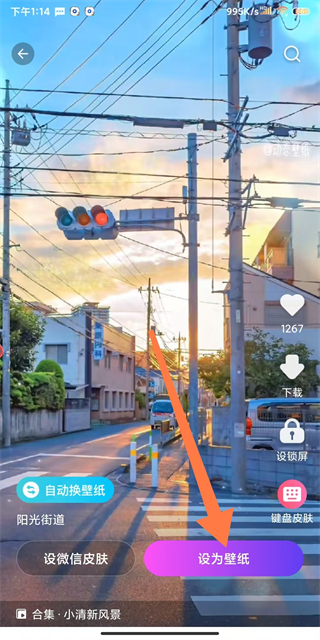 4、在壁紙?jiān)斍轫撁?,點(diǎn)擊設(shè)為壁紙按鈕,即可完成壁紙更換操作。
