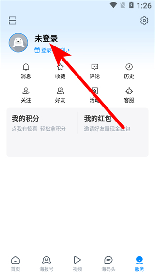 2、在服務(wù)頁面,點擊未登錄區(qū)域,進入登錄界面。