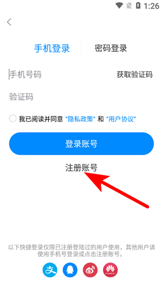 3、在登錄界面,點擊注冊賬號選項,進入注冊賬號頁面。