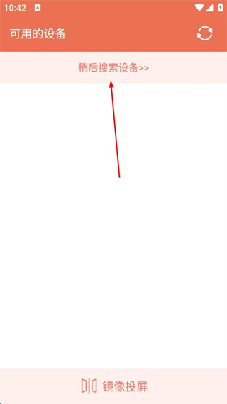 1、打開一鍵投屏APP,點擊“稍后搜索設備>>”進入資源選擇頁面。