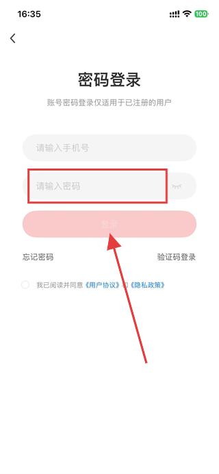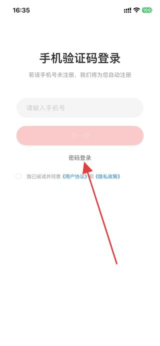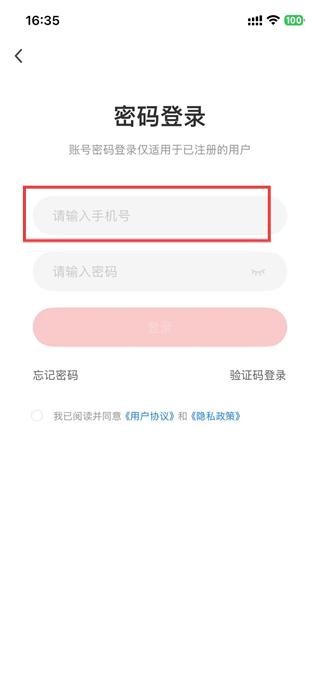 2、在密碼登錄頁面,點擊輸入框,填寫手機號。