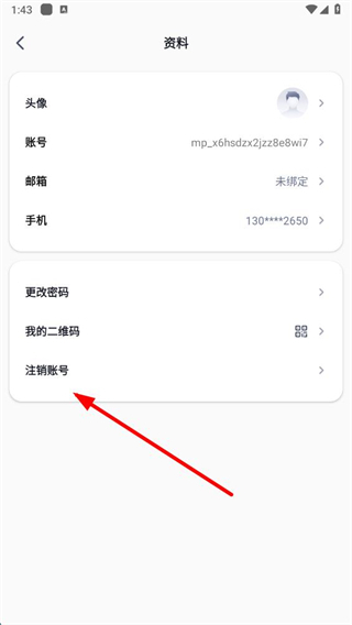 3、在資料頁面點擊注銷賬號選項,進入注銷賬號頁面。