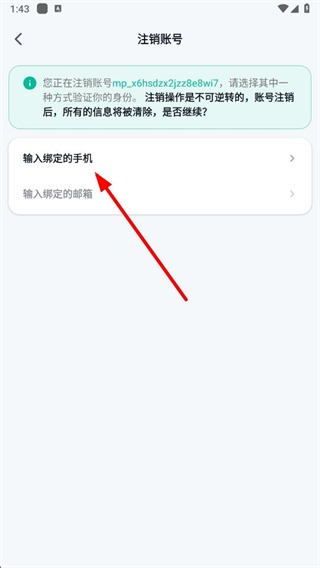 4、在注銷賬號頁面選擇輸入綁定的手機或輸入綁定的郵箱進行身份驗證,完成驗證后即可注銷賬號。