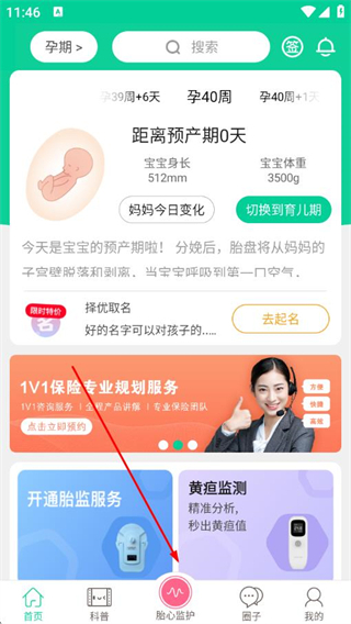 1、打開微胎心APP,點擊導(dǎo)航欄中的胎心監(jiān)護。