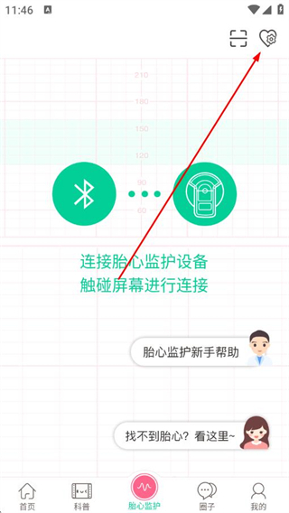 2、在胎心監(jiān)護頁面點擊右上角的設(shè)置圖標,進入監(jiān)護設(shè)置頁面。