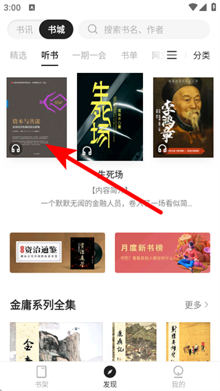 2、在聽書界面,選擇目標(biāo)聽書書籍,進(jìn)入書籍詳情頁面。