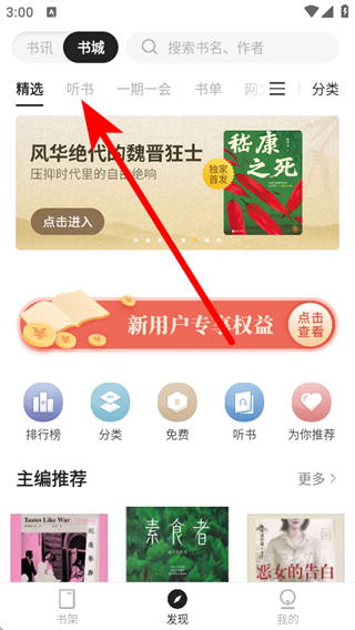 1、在掌閱精選書城頁面,點擊聽書選項,進(jìn)入聽書界面。