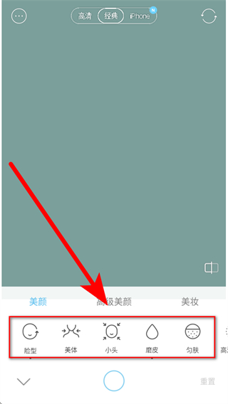 2、在美顏功能中,可選擇臉型、美體、小頭、磨皮、勻膚等功能進行調(diào)整。