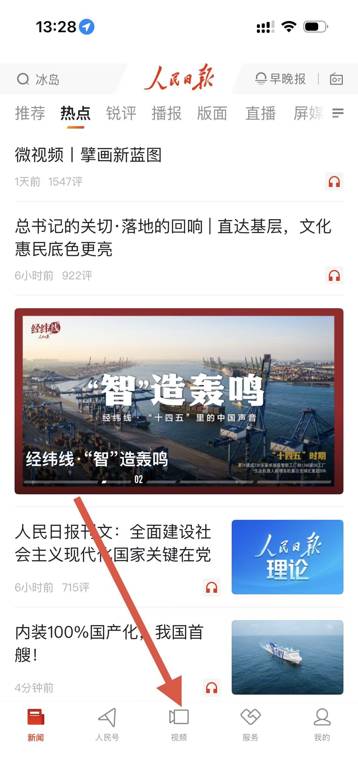 1、在人民日報app首頁,點擊視頻選項,進(jìn)入視頻頁面。