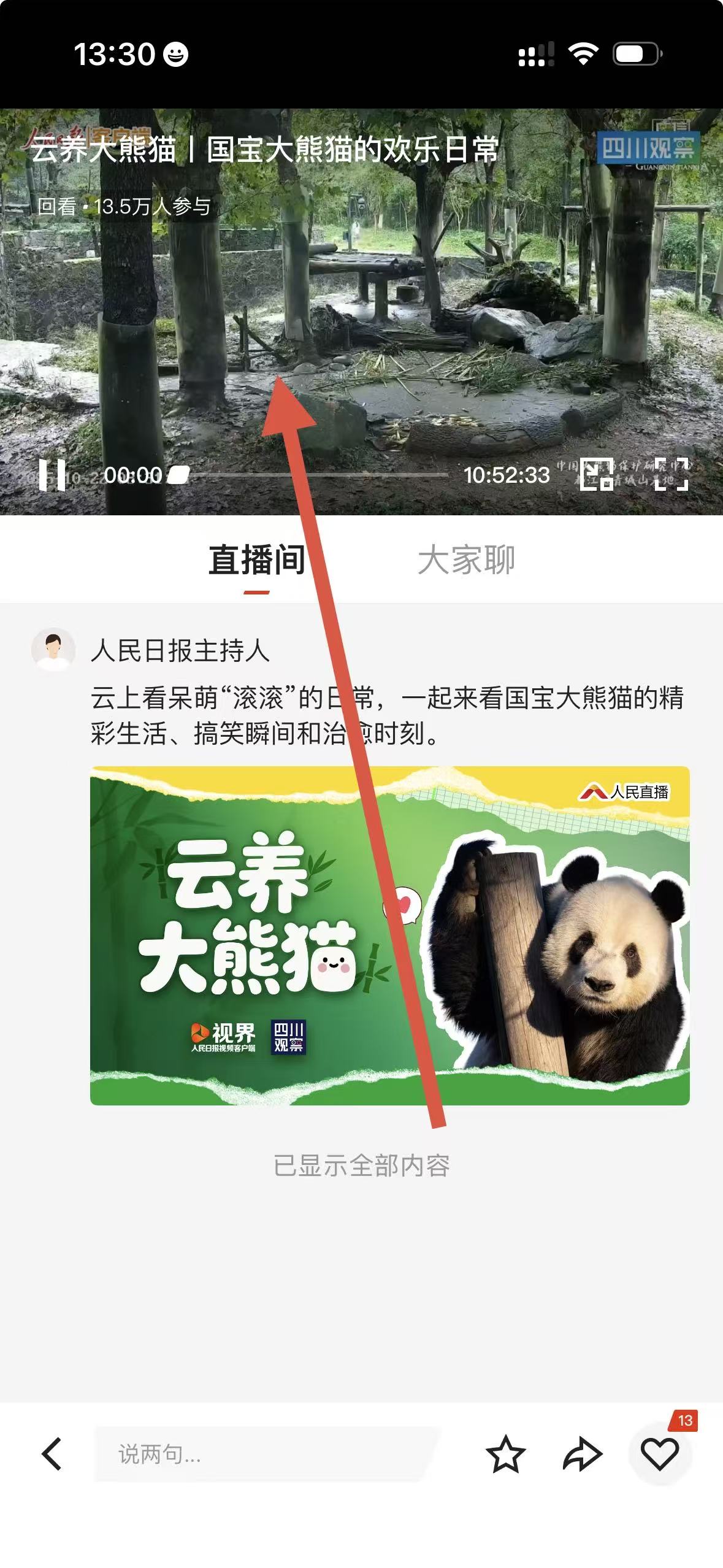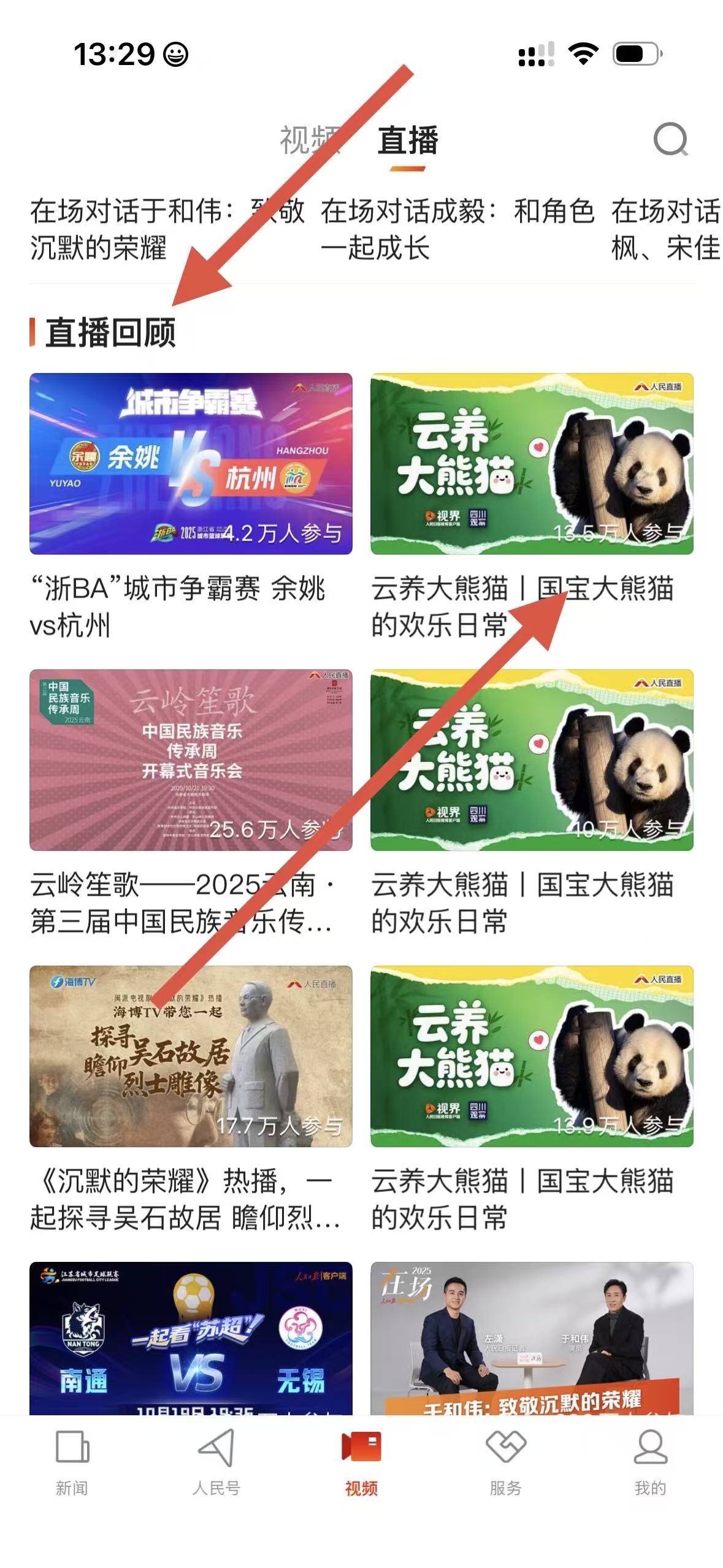 3、在直播頁面,找到直播回顧列表,點擊要觀看的回放內(nèi)容如云養(yǎng)大熊貓。