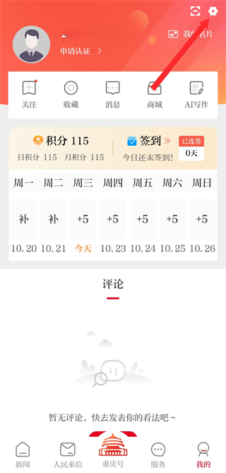 1、在新重慶的首頁(yè),點(diǎn)擊底部我的按鈕,進(jìn)入個(gè)人的頁(yè)面。