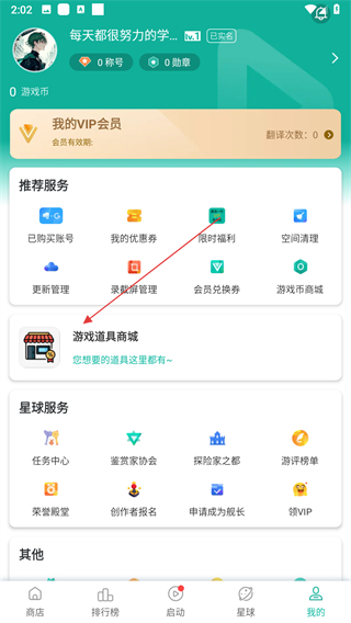 2、在我的頁面,點(diǎn)擊游戲道具商城選項(xiàng)。