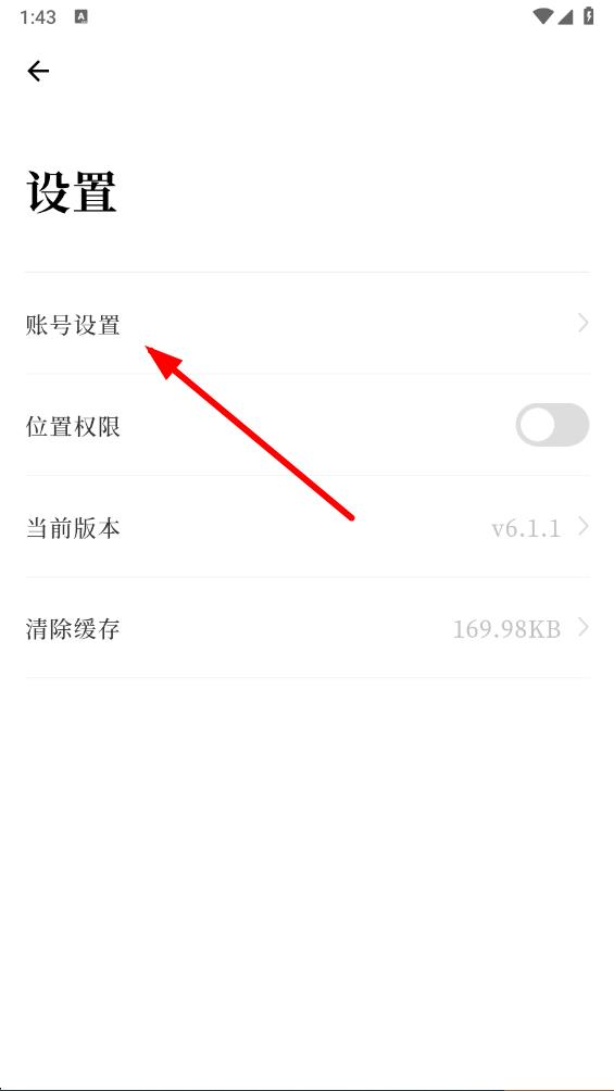 3、進入設(shè)置頁面后,點擊賬號設(shè)置的選項。