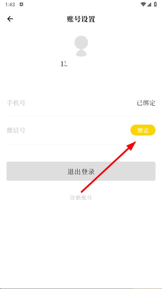 4、在賬號設(shè)置頁面里,找到微信號選項,點擊其右側(cè)的綁定按鈕,按照提示完成微信綁定操作。