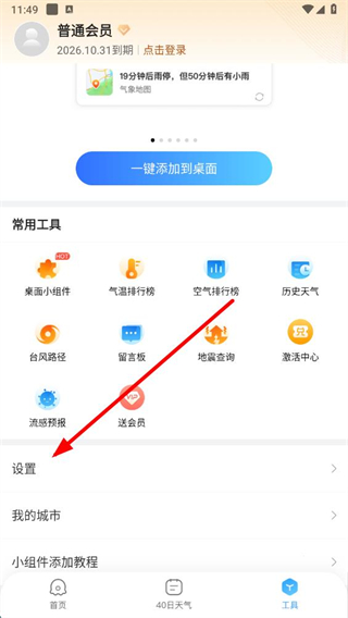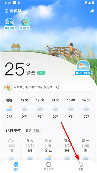 1、打開2345天氣預(yù)報APP,點(diǎn)擊右下角工具選項(xiàng)。