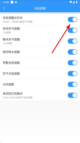 4、在消息提醒頁面,點(diǎn)擊消息提醒總開關(guān)右側(cè)的開關(guān),將其關(guān)閉即可關(guān)閉消息提醒。