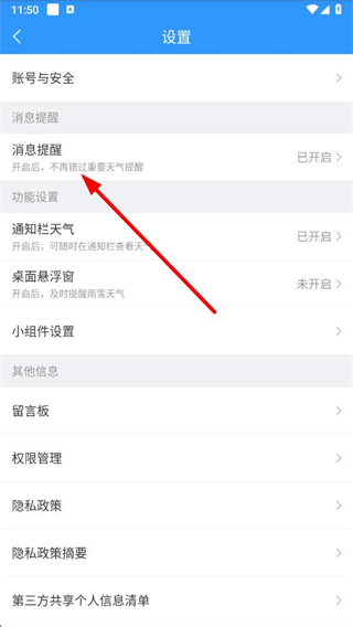 3、進(jìn)入設(shè)置頁面后,點(diǎn)擊消息提醒選項(xiàng)。