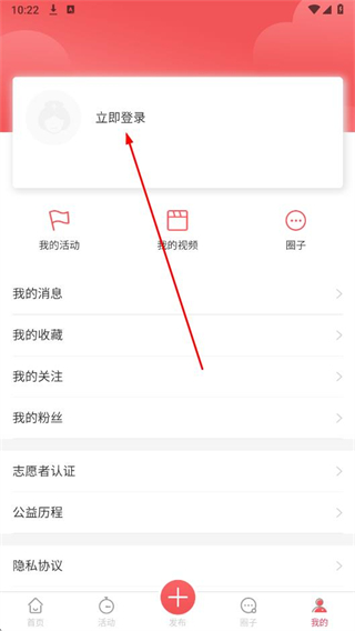 2、在我的頁(yè)面,點(diǎn)擊上方的立即登錄按鈕。