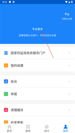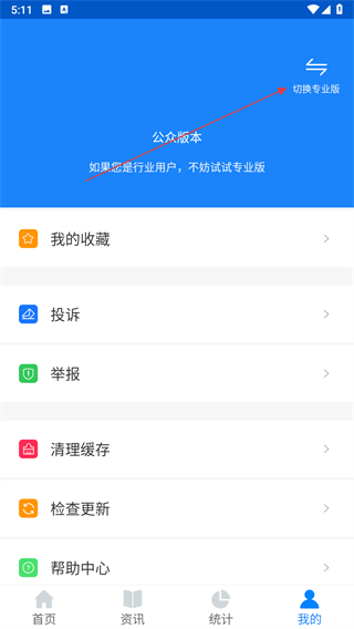 2、點(diǎn)擊我的頁面右上角的切換專業(yè)版按鈕。