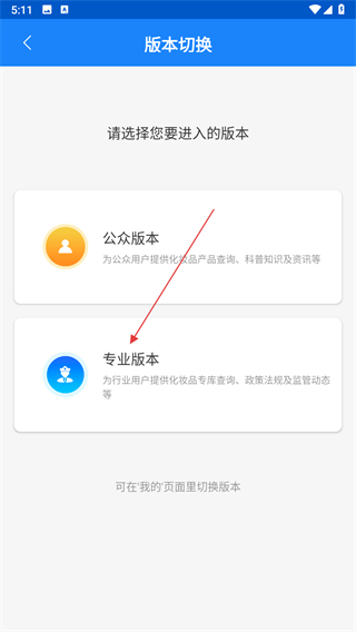 3、在版本切換頁面,點(diǎn)擊專業(yè)版本選項(xiàng)。