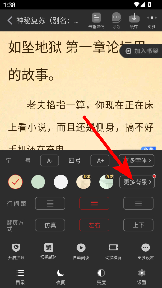 3、在閱讀設(shè)置頁面中,點(diǎn)擊更多設(shè)置選項(xiàng),進(jìn)入更多設(shè)置界面。