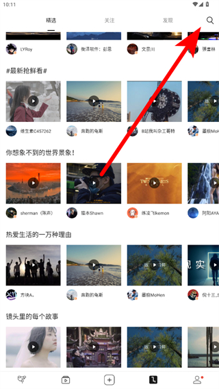 2、在發(fā)現(xiàn)界面,點(diǎn)擊右上角的搜索圖標(biāo)進(jìn)入搜索界面。