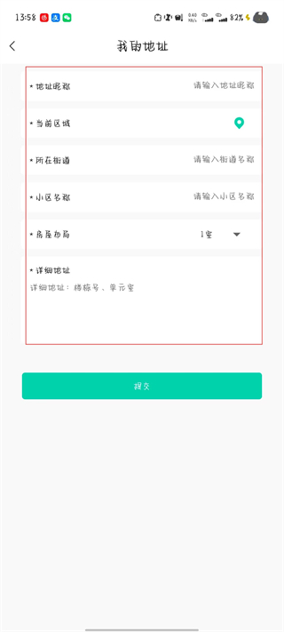 4、在我的地址頁面,依次輸入信息,然后點擊提交。