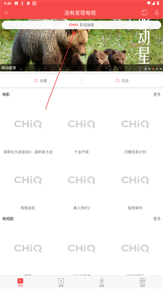 1、打開(kāi)chiq電視的應(yīng)用APP,點(diǎn)擊首頁(yè)上方搜索的區(qū)域。