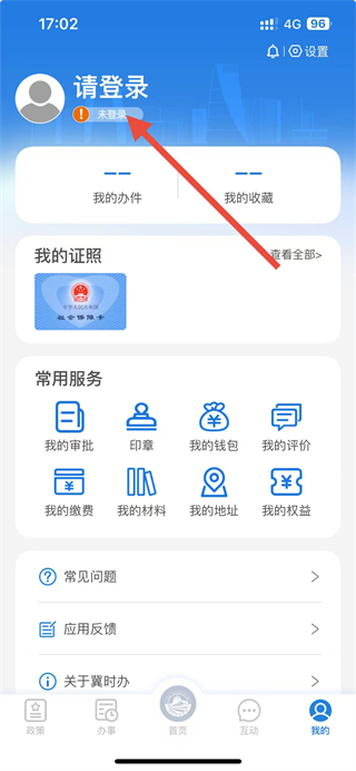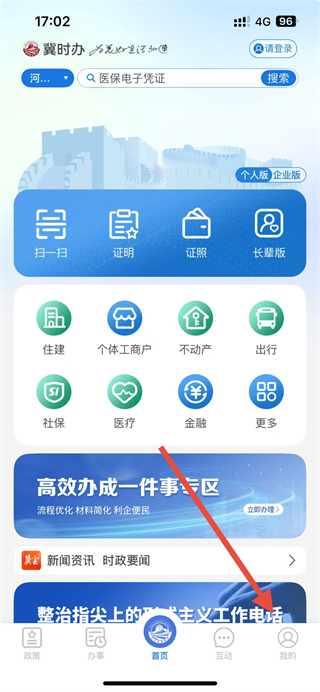 1、打開冀時(shí)辦app,點(diǎn)擊底部導(dǎo)航欄的我的選項(xiàng)進(jìn)入個(gè)人頁(yè)面。
