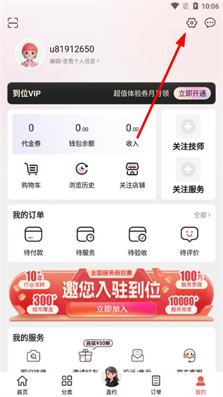 1、打開到位上門APP,點(diǎn)擊界面右下角我的圖標(biāo)進(jìn)入個(gè)人界面。