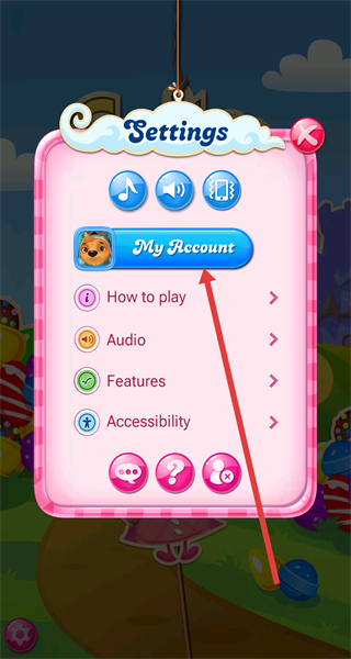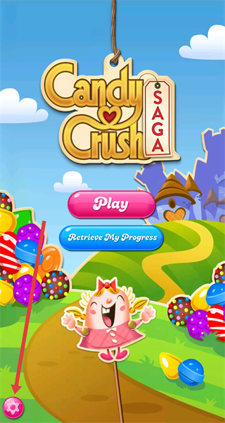 1、在《糖果傳奇》主界面點(diǎn)擊左下角設(shè)置圖標(biāo),進(jìn)入設(shè)置頁(yè)面。