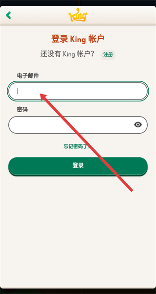 4、在King賬戶登錄界面輸入電子郵件和密碼,點(diǎn)擊“登錄”按鈕,完成賬號(hào)登錄操作。