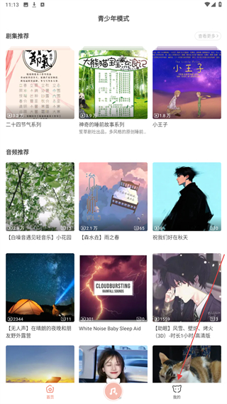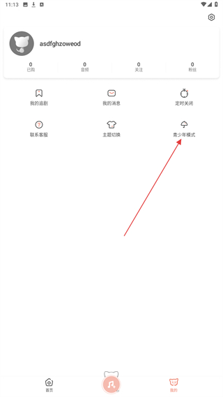 1、啟動(dòng)貓耳fm的應(yīng)用軟件,進(jìn)入青少年模式頁(yè)面點(diǎn)擊右下的圖標(biāo)。