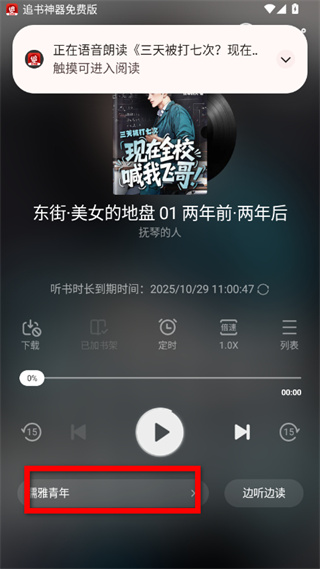 3、在聽書界面,點(diǎn)擊音色選擇區(qū)域,進(jìn)入音色選擇界面。