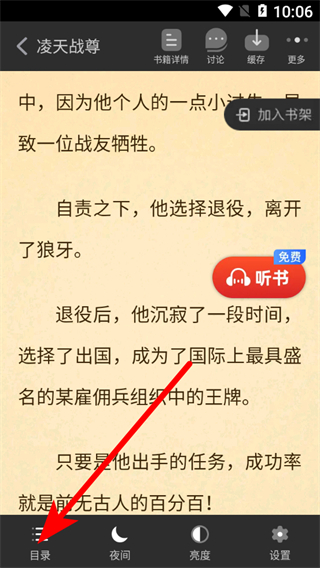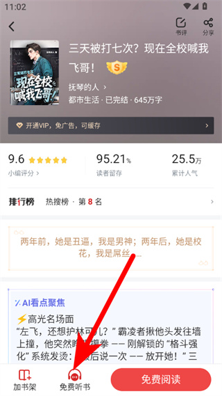 2、在書籍詳情頁面,點(diǎn)擊免費(fèi)聽書選項(xiàng),進(jìn)入聽書界面。
