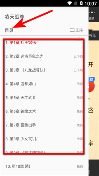 4、在目錄列表中,即可查看小說各章節(jié)的目錄內(nèi)容。